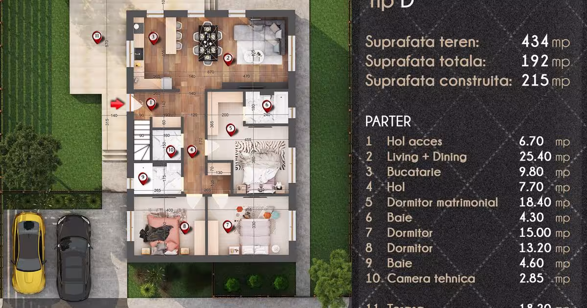 Vila se afla in complex de 6 case individuale, aflate în imediata apropiere a pădurii din Tunari – o zonă verde, liniștită și ușor accesibilă din Nordul Bucureștiului. Caracteristici: Suprafață utilă: 225 mp Teren: 360 mp, cu posibilitate de extindere cu încă 400 mp. Regim: Parter + Etaj + Mansardă Compartimentare: Parter: Living generos cu bucătărie open space Dormitor / birou Baie de serviciu Cameră tehnică Etaj: 3 dormitoare, dintre care unul matrimonial cu baie și walk-in dressing Baie suplimentară pe hol Mansardă: Open space de ~100 mp – ideală pentru birou, sală de sport, hobby room sau încă un dormitor Dotări: Centrala termică pe gaz Toate utilitățile: apă curentă, gaz, electricitate, fosa septica Amplasarea este ideală pentru zona Tunari: in vecinătatea pădurii, oferind un cadru natural placut și acces facil către Autostrada A3, Șoseaua de Centură și zona Pipera.