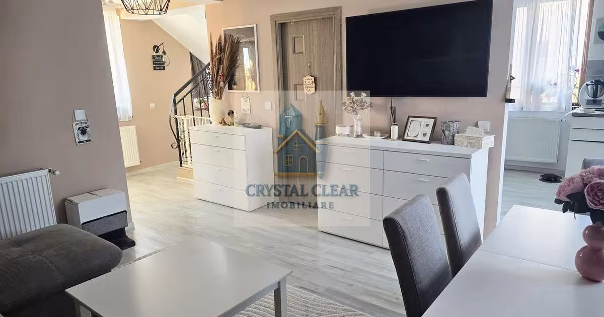Vă propunem spre vânzare, o casă, construită în sistem triplex, amplasată la marginea triplexului. Casa are 4 camere, decomandate, situată în Sângeorgiu de Mureș, pe strada Tiribici, având o suprafață utilă de 95 mp și o suprafață desfășurată de 114 mp. Casa dispune de un teren în suprafață de 308 mp. Casa este construită în anul 2018 din cărămidă, cu izolație exterioară, fiind branșată la toate utilitățile (gaz, curent, apă, canalizare). Încălzirea și apa caldă este asigurată de centrală termică proprie. Imobilul este finisat și amenajat cu materiale de calitate, ferestre PVC cu geamuri termopan, două aparate de aer condiționat, parchet, gresie și faianță în stare foarte bună și se vinde parțial mobilată și parțial utilată. Casa se află într-o zonă foarte liniștită. Curtea este amenajată parțial cu pavaj, parțial zonă verde. Dispune de o copertină, suficientă pentru două autoturisme. Poarta este acționată electric. Imobilul este compus din: - la parter: • 1 cameră de zi •...