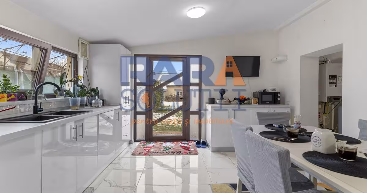 Agenția imobiliară RARA Soluții propune spre vânzare în Roman, județul Neamț: Casă individuală cu 4 dormitoare, living, 3 băi și anexe Sat Ion Creangă, Comuna Ion Creangă, Jud. Neamț Proprietatea este amplasată central, în imediata apropiere a Primăriei, Școlii, Dispensarului și supermarketului Profi. Acces rapid către municipiul Roman – 10 km (aprox. 14 minute). Caracteristici construcție: - construcție din BCA, realizată în 2008 - 157 mp utili, 197 mp amprentă la sol - acoperiș din tablă, prevăzut cu parazăpezi - racordată la toate utilitățile - izolație exterioară cu polistiren - tâmplărie PVC interioară și exterioară Dotări: - se vinde complet mobilată și utilată - electrocasnice incluse - scule și unelte pentru grădinărit - foișor cu grătar din cărămidă, plită și chiuvetă - sistem de irigație gazon Teren – 2.600 mp, compus din: - curte amenajată cu alei, locuri de parcare și brazi (~1.000 mp) - livadă cu aprox. 40 de pomi fructiferi (~400 mp) - gră...