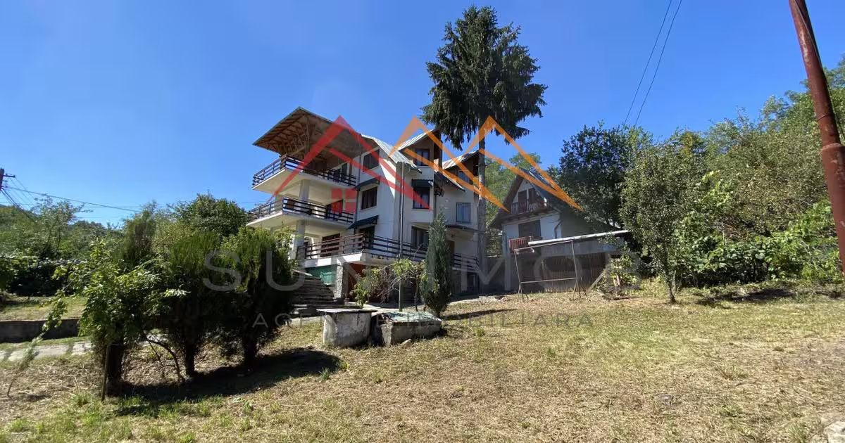 Agentie imobiliara va ofera spre vanzare doua vile amplasate pe un teren cu livada pe Valea Prahovei, in orasul Campina, cartier Poiana Campina, judetul Prahova. Zona in care sunt amplasate cele doua vile este una foarte linistita, aproape de padure, plina de verdeata si este accesibila cu orice tip de transport, drumul este pavat iar accesul se face direct din strada. Prima vila are urmatoarea configuratie: D+P+1+M si este construita in anul 1996, suprafata construita este de 611 metri patrati, suprafata utila este de 521 metri patrati iar amprenta la sol este de 202 metri patrati. Constructia este din Beton + BCA + Caramida si este compusa din 7 camere, 6 dormitoare si o sufragerie, 6 grupuri sanitare (2 per etaj), garaj pentru 3 masini, beci, camera tehnica pentru centrala termica, 3 terase mari si un balcon. A doua vila este construita in anul 1997 si are urmatoarea configuratie: S+P+M, suprafata construita este de 103 metri patrati iar amprenta la sol este de 38 de met...