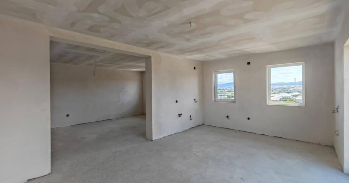 Casa este pe 1 nivel si este compartimentata astfel:2 camere living cu bucatarie foarte mare 2 bai camera centralei hol. Constructia este finalizata, iar materialele folosite sunt de cea mai buna calitate: