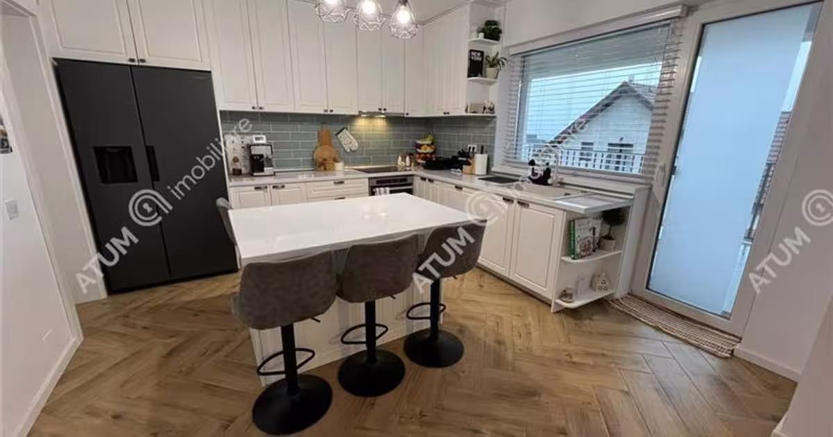 Va propunem spre vanzare o casa individuala moderna, situata intr-o zona noua de case din Viile Sibiului, la doar cateva minute de Sibiu, o proprietate construita in anul 2024 care imbina perfect functionalitatea, confortul si standardele actuale de locuire. Imobilul este desfasurat pe demisol, parter, etaj si pod, fiind amplasat pe un teren de 400 mp, cu o amprenta la sol de 85 mp si o curte libera frumos amenajata de aproximativ 315 mp. Casa beneficiaza de acces facil, vecinatati linistite si o orientare avantajoasa care aduce lumina naturala pe tot parcursul zilei. Compartimentarea este inteligenta si eficient gandita. La demisol se afla doua garaje incapatoare, cu o suprafata totala utila de 47.8 mp, spatiu generos pentru depozitare si un hol cu casa scarii de 18.9 mp. Parterul este compus dintr-un living spatios de 27.30 mp, o bucatarie luminoasa de 14.50 mp cu acces direct la terasa de 17 mp, o camara de 2.9 mp, o baie de 3.6 mp si un hol generos, toate complet finisate si mobi...