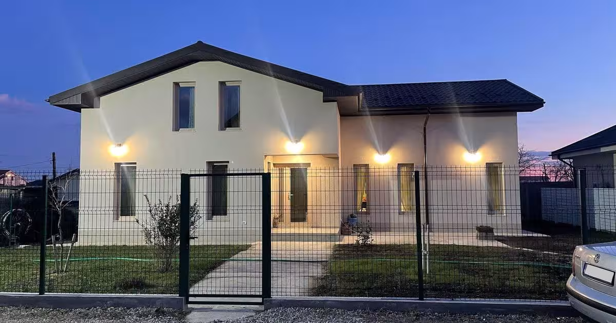 Vila este o constructie moderna, cu regim de inaltime P+M, edificata in anul 2020, pe un teren in suprafata de cca 400 mp., cu o deschidere de 20 m, situata pe str. Agricultorului, intr-un cartier rezidential aflat in plina dezvoltare constructiva. Terenul este imprejmuit cu gard pe fundatii din beton cu stalpi metalici si plase de sarma si beneficiaza de toate utilitatile: apa, curent, gaze, iar canalizarea se deverseaza momentant intr-o fosa septica, urmand ca in foarte scurt timp sa fie racordata la canalizarea orasului, care deja este realizata si pusa in functiune. Structura casei este pe fundatii si stalpi din beton armat, placa din beton peste parter, zidarie din BCA Ytong, acoperis cu tabla lindab si este izolata pe exterior cu polistiren de 16 cm., iar in interior cu rigips. Toate lucrarile si finisajele sunt executate la un nivel calitativ foarte ridicat si cu materiale de foarte buna calitate. Tamplaria este Salamander cu geam tripan, pardoselile sunt din gresie si parche...