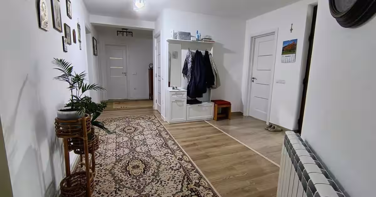 * Casa este complet utilat și mobilata, casa din caramida, izolata exetrior cu polistiren de 16cm, acoperis nou, geamuri termopan, gresie-faianta, parchet, pavaj in curte, gradina cu spatiu verde, centrala gaz, curent, apa, canalizare, drum asfaltat, situata intre case, planseu turnat beton si izolat cu polistiren de 20cm+sapa peste.