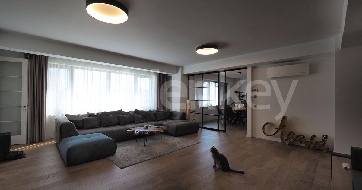 Acest penthouse duplex cu 5 camere este situat pe o strada linistita langa Parcul Circului, la etajele 2 si 3 intr-un imobil D+P+3 finalizat in 2019 cu doar 3 unitati rezidentiale. Este orientat sud-vest, fiind insorit toata ziua. Are suprafata construita de 325mp din care 216mp utili si 88mp terase. Etajul 2 este compus din living generos de 65mp, bucatarie separata complet echipata de 25mp, dormitor de 18mp, dormitor/birou 14mp, baie si 3 balcoane. Pe scara interioara ajungem la etajul 3 care are 2 dormitoare matrimoniale generoase de 26mp fiecare cu bai proprii, hol si iesire pe terasa de 70mp. Finisajele sunt de cea mai buna calitate, beneficiaza si de sistem smart-home cu automatizare pentru incalzire, sitemul de iluminat si jaluzele. Dispune de 1-2 locuri de parcare in garaj la pretul de 30.000 euro/loc. Apartamentul este mobilat modern, are finisaje de top si este ideal pentru rezidenta unei familii.