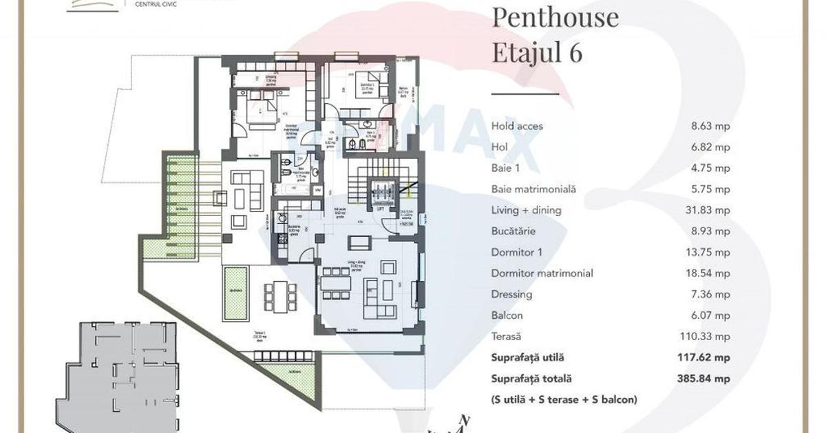 Penthouse decomandat cu 3 camere în zona Centrul Civic, Brașov