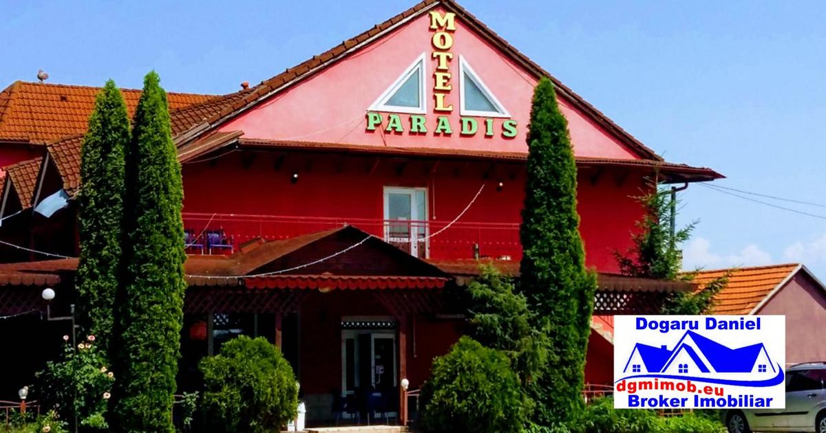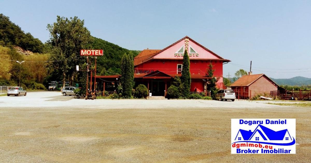 Dogaru Daniel-Broker Imobiliar in parteneriat cu Green House & Real Estate vindem in exclusivitate Motel Paradis, motel de 3 stele, situat la DN7, spre Arad, la 50 km distanta de Deva. Motel construit in anul 2005, intr-o locatie cu un potential urias si de o frumusete rara, fiind asezat la drumul care duce spre iesirea din tara si la aproximativ 15 km de intrare pe autostrada, Motel Paradis este un obiectiv de interes atat pentru turisti cat si pentru investitori. Se poate ajunge si cu auto dar si cu trenul, gara fiind la aproximativ 700 m de motel. In fata se afla drumul national Deva-Arad iar in spate, la o distanta apreciabila se afla raul Mures, un loc agreat de pescari. De asemenea, motelul beneficiaza de o parcare generoasa, betonata, iluminata, cu o capacitate de parcare pentru aproximativ 100 de tiruri si fiind tot terenul imprejmuit cu gard metalic si de lemn. Configuratia cladirii este: D+P+E+M, demisolul are o suprafata de 110 mp unde se poate face o crama, la parter...