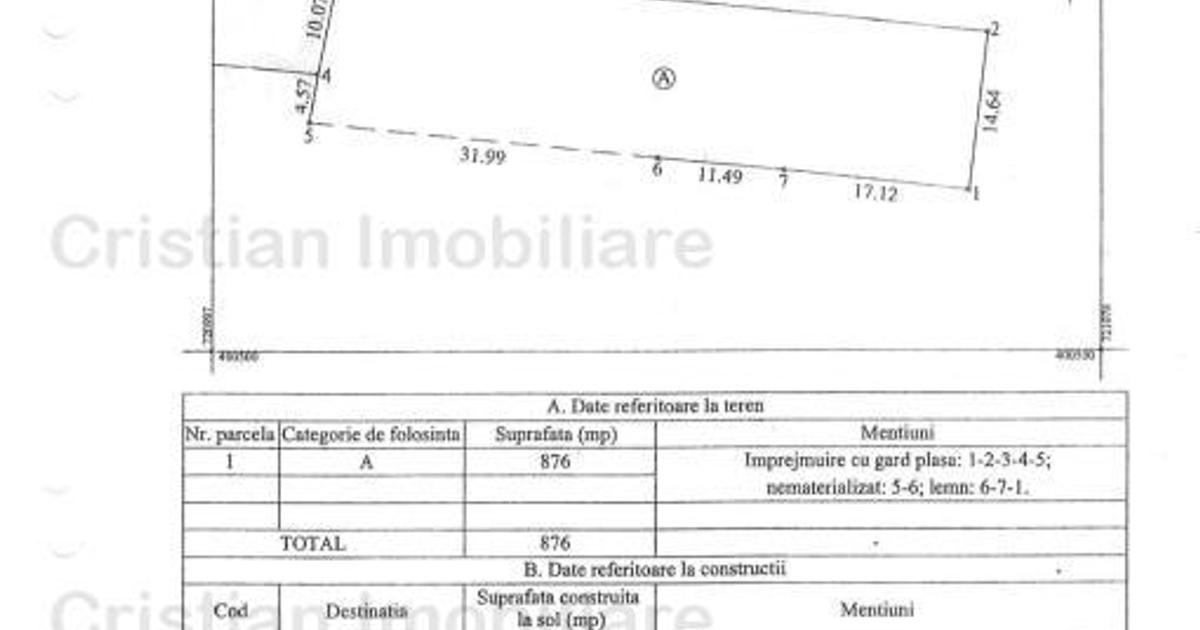 Teren intravilan de constructii * Cu o suprafata de 876 mp * Deschidere de 15 m * Gard tabla * Strada asfaltata * Utilitati apa curenta * Toate actele la zi! * Posibilitate plata in rate! CRS4820 ID 19133 &06