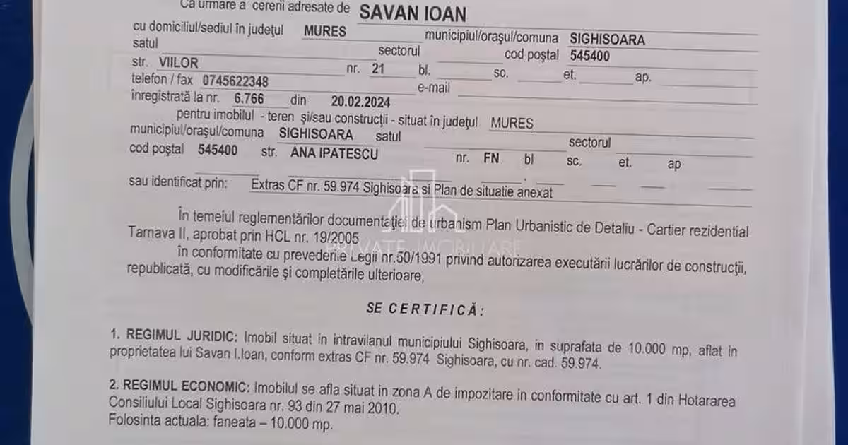 Teren de vanzare intravilan, 10 000 Mp , Sighisoara