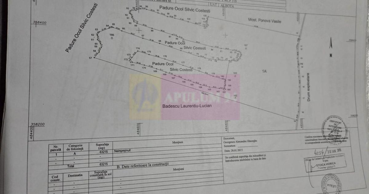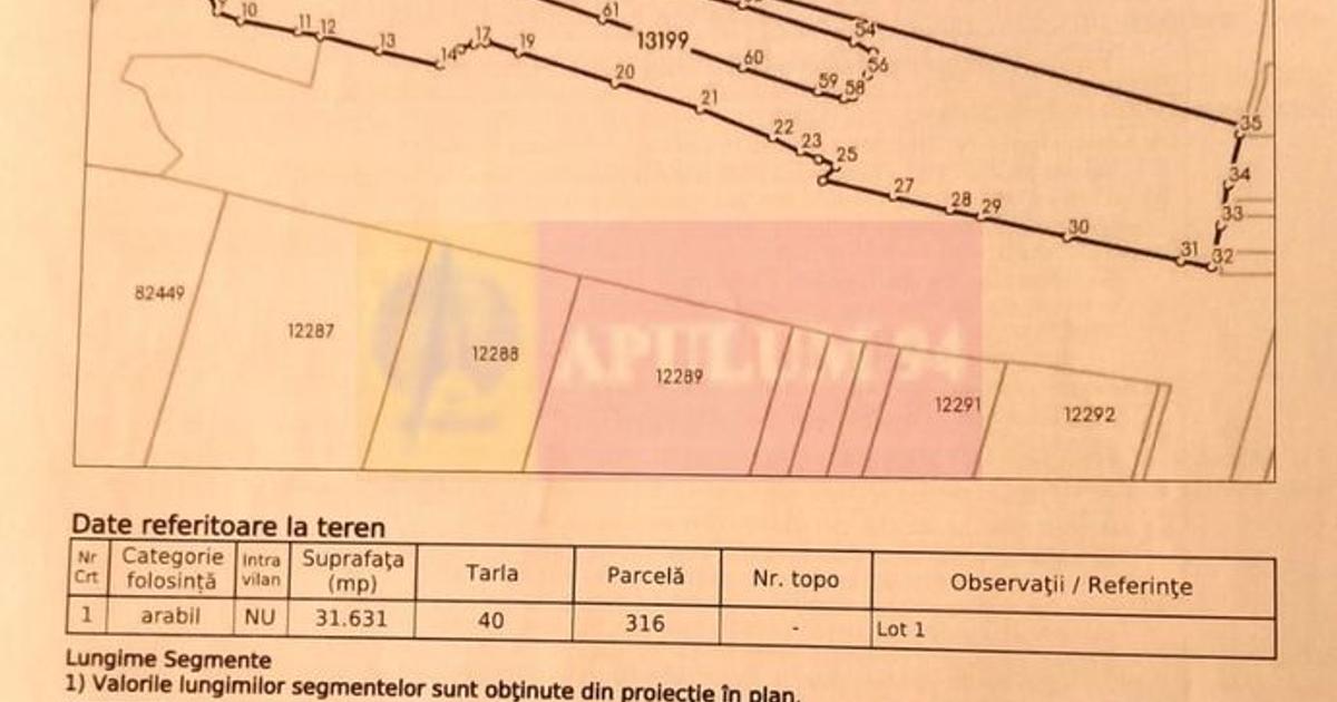 Teren agricol situat în Albota, in apropiere de Drumul Expres Craiova–Pitești (DEx12). Proprietatea este formată din două terenuri extravilane cu cărți funciare separate. Se pot cumpăra individual sau împreună. Suprafață totală disponibilă 94.227 mp (aprox. 9,4 ha) Structura proprietății : Teren 1 62.596 mp Preț: 2,95 €/mp Preț total: 184.650 € Teren 2 31.631 mp Preț: 3,10 €/mp Preț total: 98.056 € Achiziție pachet integral 94.227 mp Preț: 2,85 €/mp Preț total: 268.500 € Date tehnice : - teren extravilan - categorie folosință: arabil - acces din drum de exploatare - cărți funciare individuale - fără sarcini în cartea funciară Localizare : Proprietatea se află în zona agricolă a comunei Albota, cu acces rapid către Pitești și în imediata apropiere a Drumul Expres Craiova–Pitești (DEx12). Loturile de teren se pot vinde individual sau împreună. Documentația cadastrală completă este disponibilă pentru verificare.