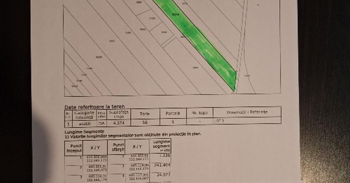 Vand teren intravilan, suprafata 4374 mp, deschidere fata 18 mp, in zona cu case, posibilitate current electric, gaze, apa si canalizare.