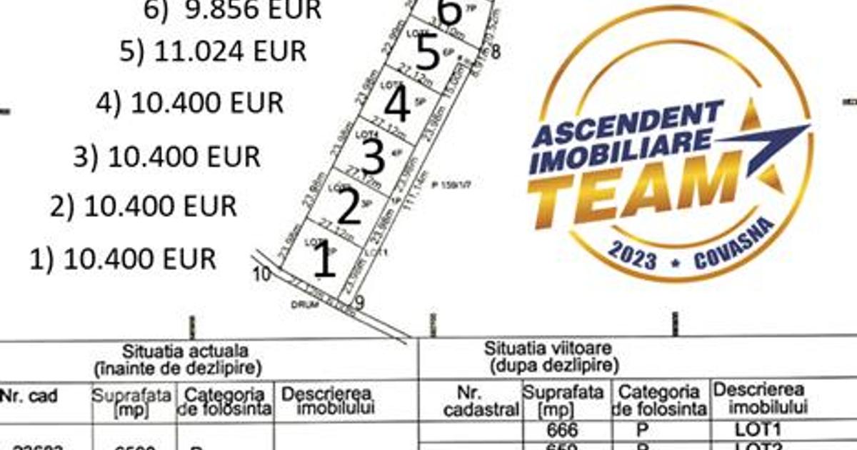 Comision cumparator: 0%. ASCENDENT IMOBILIARE COVASNA Va propunem spre vanzare 8 loturi de teren extravilan, ideale pentru constructia unei case de vacanta, in zona Municipiului Sfantu Gheorghe. Pentru confortul dumneavoastra, va invitam sa faceti o prima vizionare, din locatia unde va aflati, chiar acum, prin accesarea filmului de prezentare pe care vi l-am pregatit cu drag: Film Prezentare: https: www.youtube.com watch?v=1SWaXhcuMDM Imobilul are acces facil, la numai 5 minute de centrul orasului, in mijlocul naturii. Proprietatea are un front stradal de 24 m si este destinata pentru case de vacanta, recreere. Recomandam oferta celor ce isi doresc sa petreaca timpul liber intr-un cadru natural deosebit, cat si ca investitie cu un randament foarte bun. Pretul expus este raportat la o singura parcela. Pentru mai multe detalii nu exitati sa ne contactati chiar ACUM. Consilierul dedicat alesei oferte: Bicsak Laszlo, T elefon Whatsapp – 0752883104 Detalii, fotografii...