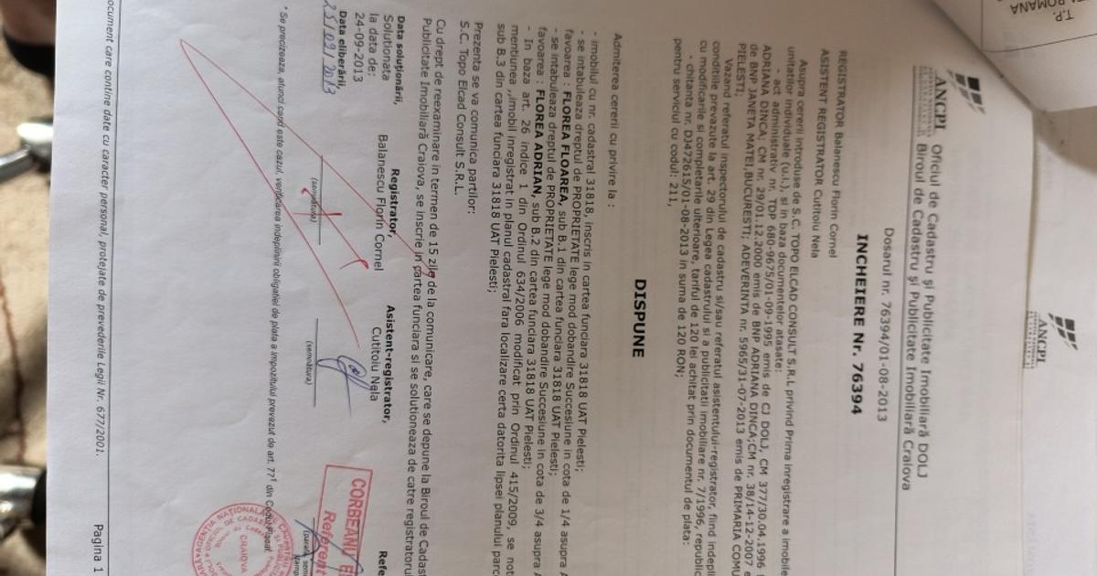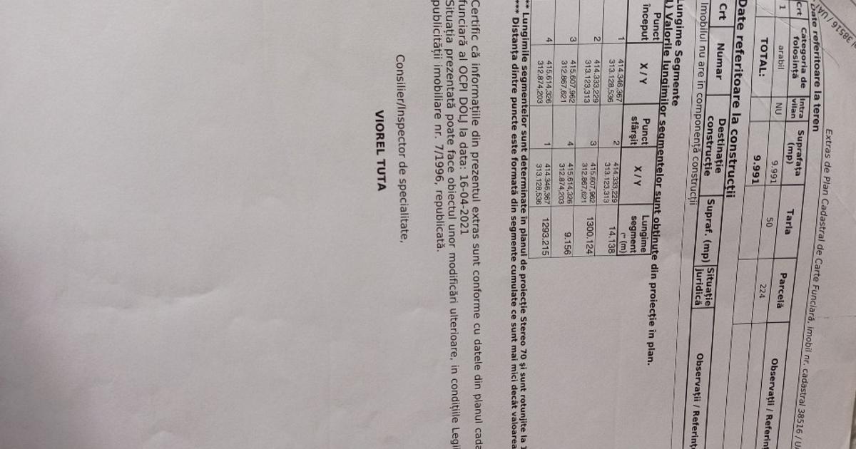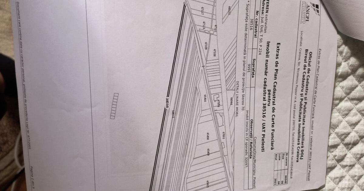 Nr. cadastral 2070 • CF 32097 – Pielești PRET LISTARE: 3 EUR/MP -2. TOP LOCATION! TEREN COMBINAT INTRAVILAN + EXTRAVILAN! IDEAL PENTRU PLAN DE...