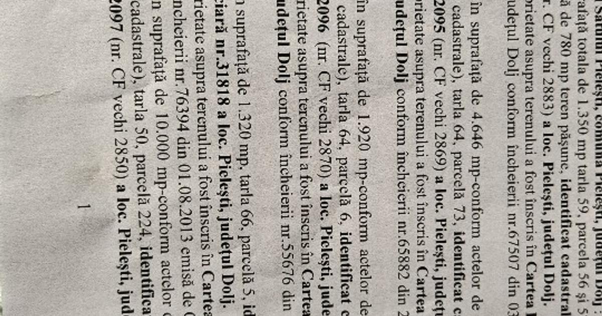 Terenuri extravilane ( + 288 mp deja trecuti in intravilanul Comunei Pielesti! ) – potențial ridicat de investiție! Pielești-Craiova, județul Dolj – acces facil către DN 65 Craiova! Se oferă spre vânzare 2 loturi de teren extravilan, ideale pentru investiție sau dezvoltări viitoare.
