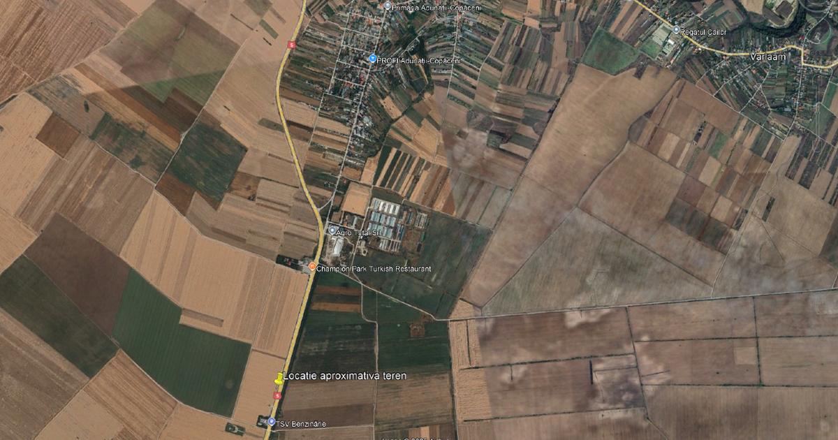 Ofer la vanzare un teren de 6.000 metri patrati, intravilan (categoria de folosinta arabil), in (UAT) Comuna Adunatii-Copaceni, Jud. Giurgiu. Terenul are deschidere de 20.2 metri liniari la DN 5 si se afla la 200-300 metri de benzinaria TSV (inainte de benzinarie), pe partea dreapta a DN 5, mergand din directia Adunatii-Copaceni spre Calugareni. Inainte si dupa acest teren este teren viran, camp (nu sunt vecini cu constructii). Asupra terenului a fost efectuat un studiu geotehnic. In apropiere se va construi noul aeroport Bucuresti-Sud. Noul aeroport va fi dimensionat pentru a deservi peste 11 milioane de pasageri, cu posibilitatea de extindere pentru peste 20 de milioane de pasageri si sa permita transportul pe cale aeriana a cel putin 30.000 de tone de marfuri. Potrivit estimarilor aeroportul va fi gata spre finalul anului 2028 sau inceputul anului 2029. Pentru orice intrebari, va stau la dispozitie.