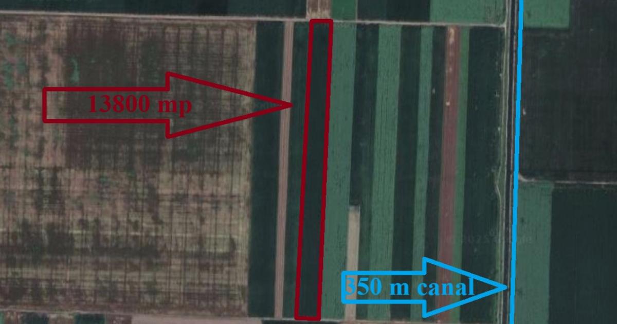 Terenul se afla la 1.7 km de sat si 350 de metri de canal de irigatii functional, in T18/1, parcela 9. Poate fi identificat pe harta ANCPI sub numarul de CF 32093.