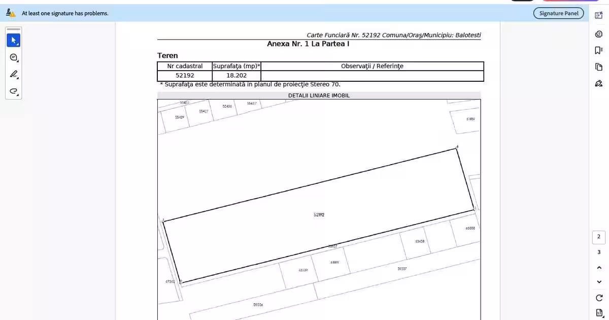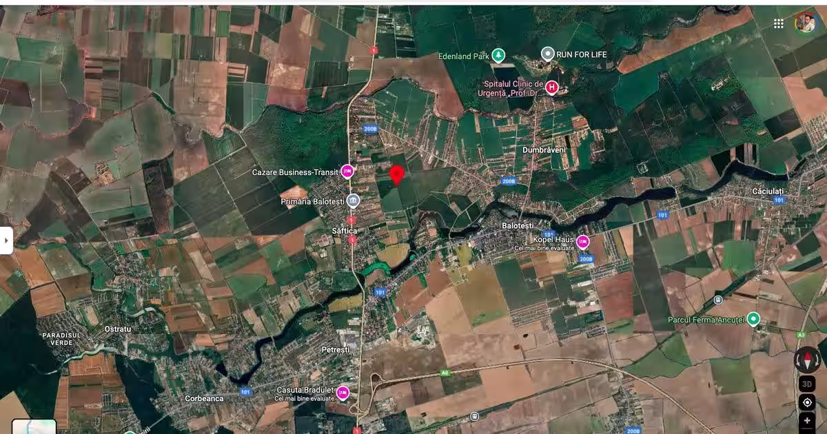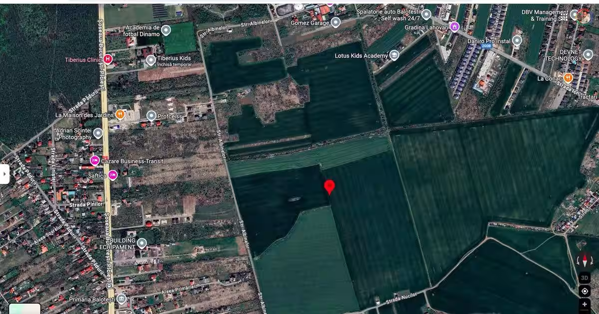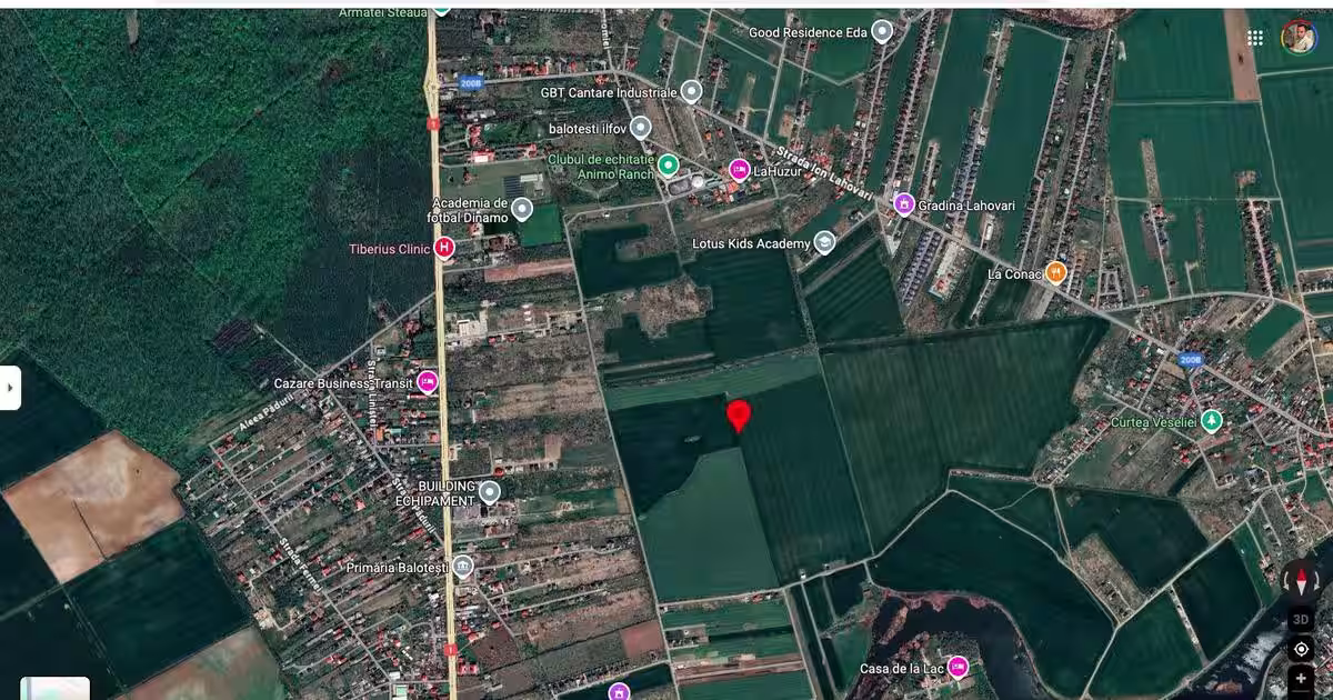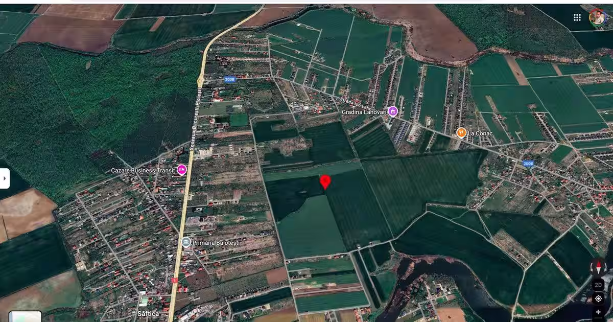 Teren intravilan Saftica Balotesti 18.200 mp Caracteristici teren intravilan Săftica, Balotești Suprafață totală: 18.200 mp. Localizare: Săftica, comuna Balotești, județul Ilfov. Statut actual: intravilan / teren agricol Poziționare: terenul are deschidere la drumurile exploatare DE 367/1 la Vest si DE 367/2 la Est, distanta pana la str. Ion Lahovari fiind de cca. 800 m Poziționare GMaps: https://www.google.com/maps/place/44%C2%B037'47.6%22N+26%C2%B004'49.2%22E/@44.6304276,26.0776066,724m/data=!3m1!1e3!4m4!3m3!8m2!3d44.6298789!4d26.080345?entry=ttu&g_ep=EgoyMDI1MDkyNC4wIKXMDSoASAFQAw%3D%3D