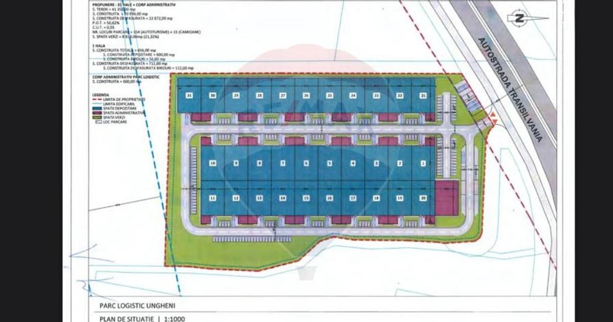OFERTA TERENURI IN UNGHENI, JUD.MURES Vanzare proprietate terenuri astfel: - un teren de 41356 mp - un teren de 2129 mp + un teren de 891 mp (vanzare separat optional) (conform schite/planuri atasat in imagini) Terenurile au potential investitional extrem de profitabil datorita unui cumul de factori existenti: - Pretul, Pozitia, Utilitatile, CF ref PUZ, Categoria de folosinta propusa (Parc Logistic si/sau Centru Logistic, Zona Cargo, Fabrica - unitati productie, Statii alimentare combustibili....etc) Nodul rutier si directiile Nord/Sud/Est/Vest reprezinta un plus incontestabil Tranzactionare sub forma de: 1. Vanzare/Cumparare 2. Parteneriat/Asociere dezvoltare procentual LocalIzare in Ungheni, jud. Mures, cu urmatoarele caracteristici : - situate la 7 km de Tg. Mures ; - pozitie: intrare prin cale de acces din autostrada Targu Mures - Ungheni - Cluj - Oradea - gaz = magistrala langa teren; - apa curenta din Tg. Ms si canalizarea, sunt conducte noi care trec...