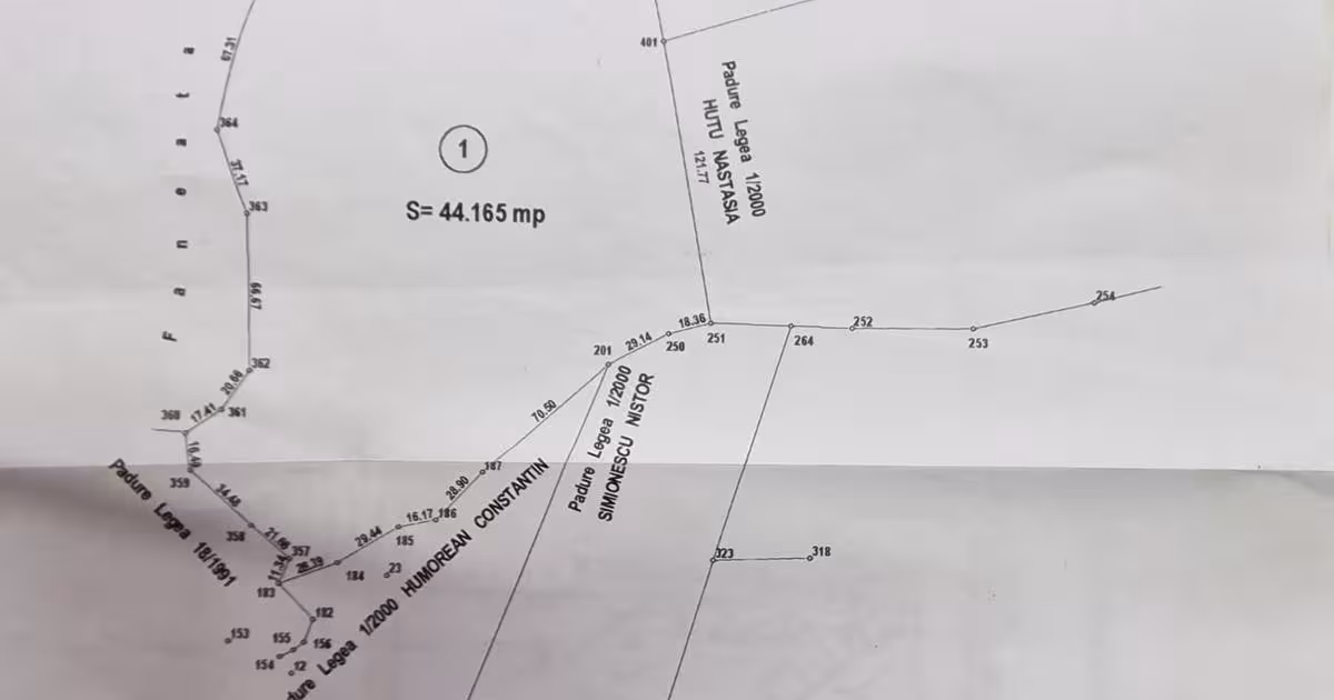 Vindem teren forestier (extravilan) in suprafata de 44165 mp in zona Doabra din com Vama, jud Suceava. Vegetatie tanara pe teren ( foioase si rasinoase ). Terenul detine parau de munte pe proprietate. La o distanta de cca 1 km de drumul forestier Doabra. Accesul se face doar pe jos sau cu auto de teren 4x4. Va multumim!