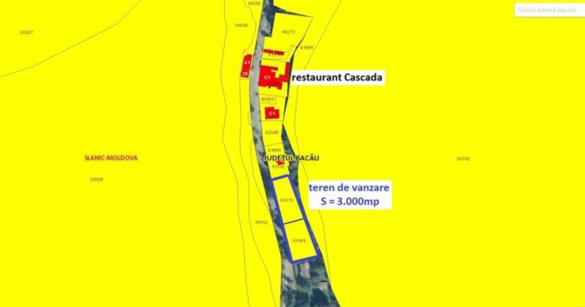 Oportunitate Unică pentru Dezvoltare Turistică în Stațiunea Montană Slanic Moldova, jud. Bacău PROHOUSE vă prezintă o oportunitate remarcabilă de achiziționare a unui teren situat în intravilanul pitoresc al stațiunii montane Slanic Moldova. Acest teren generos de 3.000 mp, cu o impresionantă deschidere stradală de 103 ml, oferă un cadru ideal pentru dezvoltarea unei investiții turistice. Localizare Strategică: Situat în apropierea celebrului restaurant Cascada (strada Mihalache Spiridon nr. 39, pct. Cascada - adresa postala), terenul beneficiază de o poziționare centrală și acces ușor la facilitățile locale. Suprafață Generoasă: Cu o suprafață de 3.000 mp, terenul oferă spațiu suficient pentru a implementa proiecte turistice de amploare, cum ar fi construirea de cabane turistice. Certificat de Urbanism:...