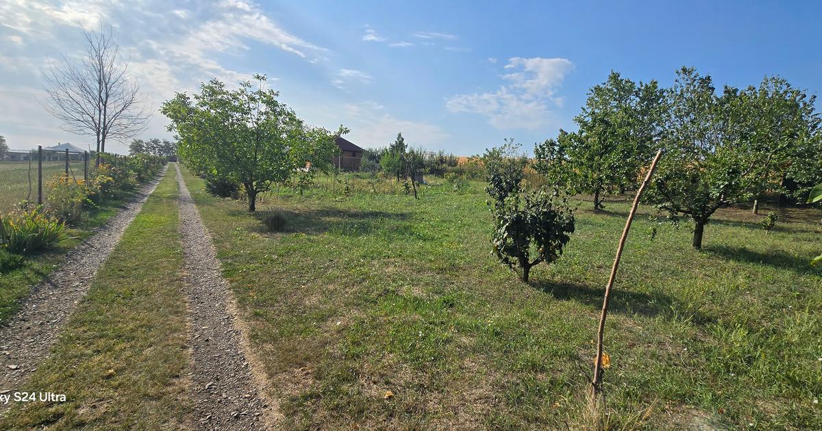 Teren in suprafata de 2400 mp, drept, deschidere de 82ml la drum privat. - pomi fructiferi, fantana