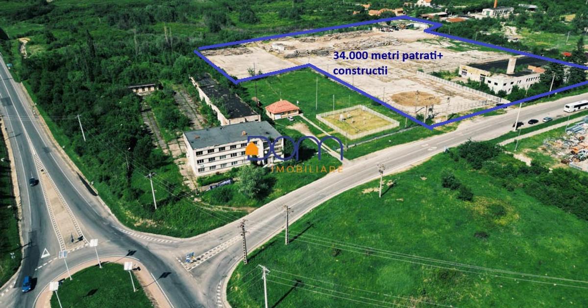 Agentia Dom Imobiliare va ofera spre vanzare teren intravilan in suprafata de 34.000 mp (3.4 Ha) situat in localitatea Caransebes, la 150 metri distanta de centura orasului Caransebes si E70 ( Craiova- Timisoara). Terenul este situat la o distanta de 150 metri pe partea stanga la iesirea din sensul giratoriu de pe centura spre localitatea Zarvesti si statiunea montana Muntele Mic. Terenul vizibilitate foarte buna si acces foarte facil din DJ inclusiv pentru masini de mare tonaj, exista doua fronturi stradale. Pe teren sunt edificate 3 constructii: -hala solida structura grinzi de beton , inaltime 6 m cu o suprafata costruita de 1212 mp