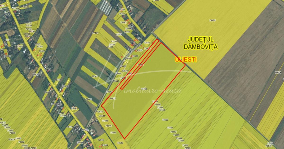Zona: Corbii Mari - Uliesti, jud. Dambovita, autostrada A1 - km 62 Pret vanzare: 798.000 EUR Pret unitar: 7 EUR/mp Suprafata teren: 113.950 mp Categoria de folosinta: intravilan - curti-constructii Front stradal: 232,42 ml Indicatori urbanism: P+E, POT 60%, CUT 2,5 Facilitati: - zona mixta - amplasat adiacent zonei rezidentiale a comunei Uliesti - destinatie constructii industriale - utilitati in imediata proximitate - deschidere de peste 230 ml - vecinatati: Autostrada A1 (km 62) La kilometrul 62 al autostrazii A1, terenul intravilan, categoria de folosinta curti-constructii, in suprafata totala de 113.950 mp, este pozitionat in plan secundar si ofera o buna oportunitate pentru dezvoltare industriala sau logistica. Distanta de la nodul rutier pana la proprietate este de 500 m si se face pe soseaua asfaltata dinspre A1 catre localitatile Uliesti si Jugureni, terenul fiind amplasat adiacent constructiilor rezidentiale. Pozitia favorabila, deschiderea generoasa...