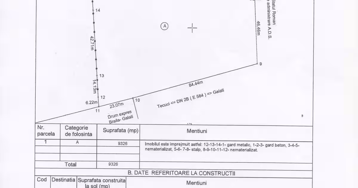 Se vinde suprafata totala, compacta, nu se lotizeaza.