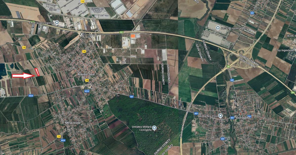 Teren intravilan in Bolintin Deal,Giurgiu liber cu o deschidere de 38ml si acces la drum pe cele 2 capete ale terenului dupa cum se observa si din poza. Avantaje: -La doar 8 km de Bucuresti-acces rapid catre oras
