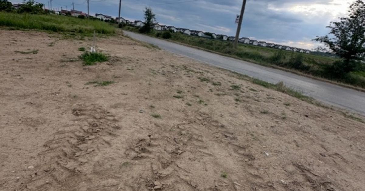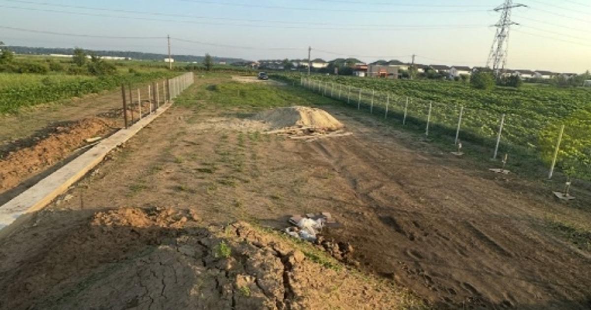 -> Terenul este decopertat de stratul de vegetație si împrejmuit cu gard (lipsește doar montajul porții laterale spate – materialele sunt deja cumpărate). Era in plan sa se faca de 11m latime, dar se poate adapta necesităților