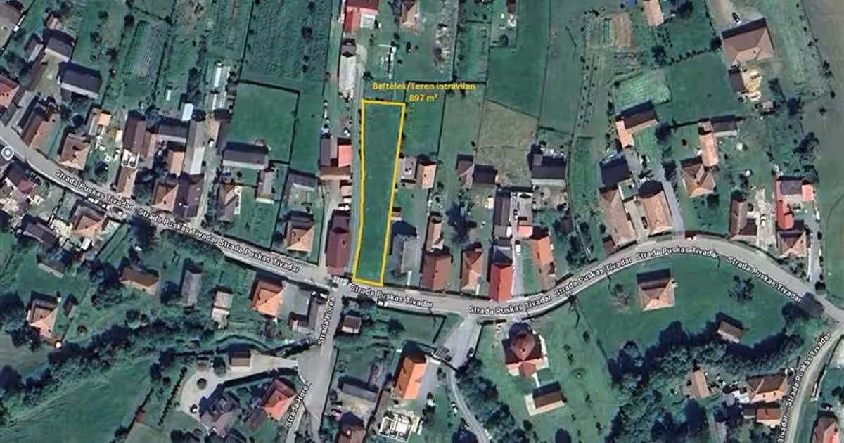 De vânzare teren intravilan Com. Ditrău, județul Harghita (str. Puskas Tivadar nr. 174 A). Terenul are suprafața de 897 m², cu o deschidere la drum de 12,3 metri. Utilitățile publice (curent electric, apă, canalizare) sunt disponibile pe teren. Este pretabil pentru construcție de locuință (POT 30%). Preț: 18.500 EUR (20,6 EUR m²) - negociabil.
