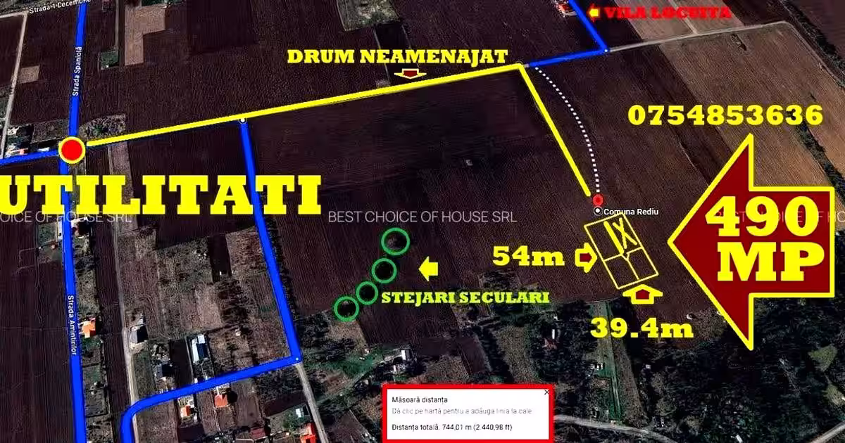 Utilitățile sunt la cca. 500 metri liniari fata de locația terenului .