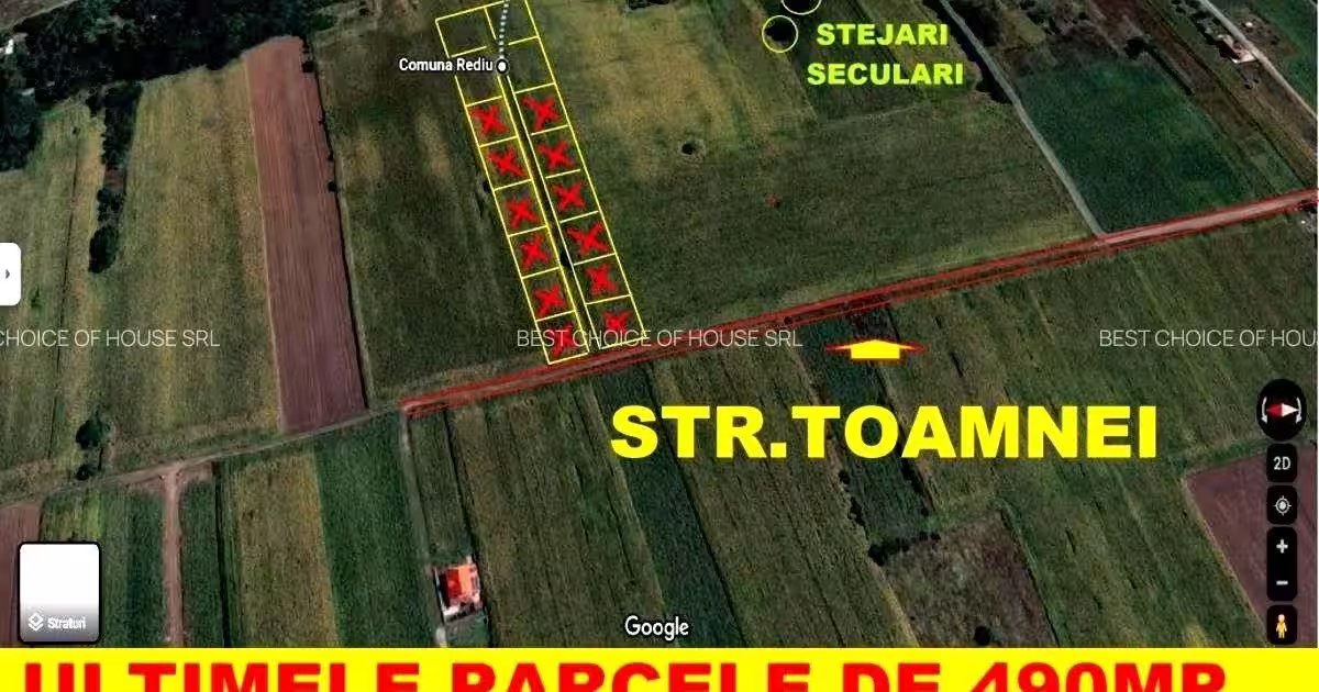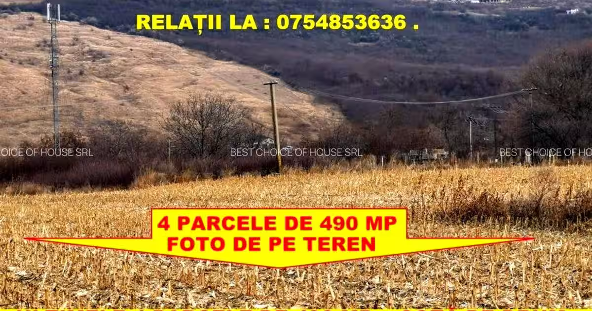 Locație ideala pentru investiție sau pentru cine dorește sa construiască mai târziu . Pret parcele de 490 mp + cota de drum , 21000 euro .