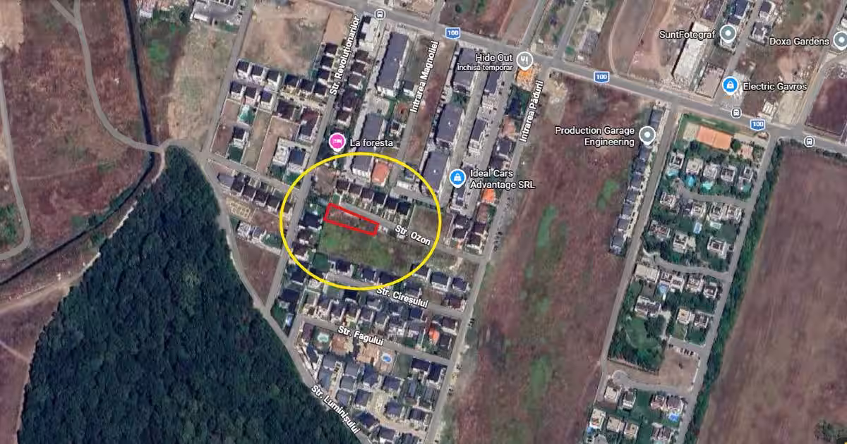 Pozitionarea este una foarte buna intr-o zona rezidentiala foarte aproape de padure "2 min de mers pe jos" la strada principala " 2 min de mers pe jos "se afla statie mijloace de transport in comun. Pe suprafata terenului nu se poate construii , dar se poate amplasa o casa mobila. Pentru mai multe detalii va rog sa ma contactati.