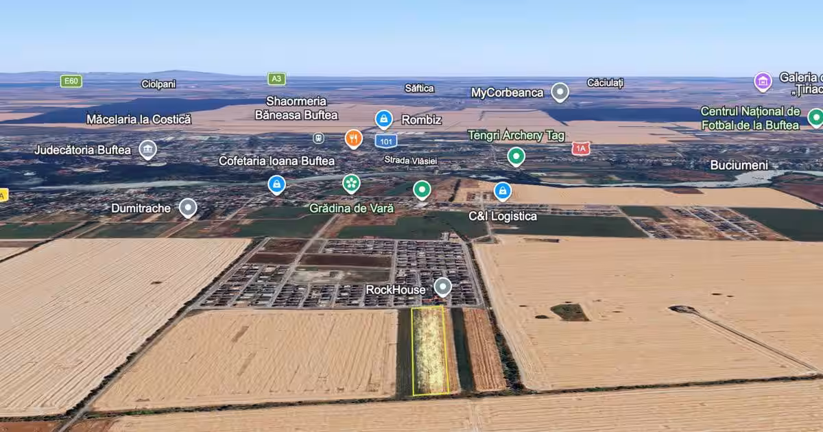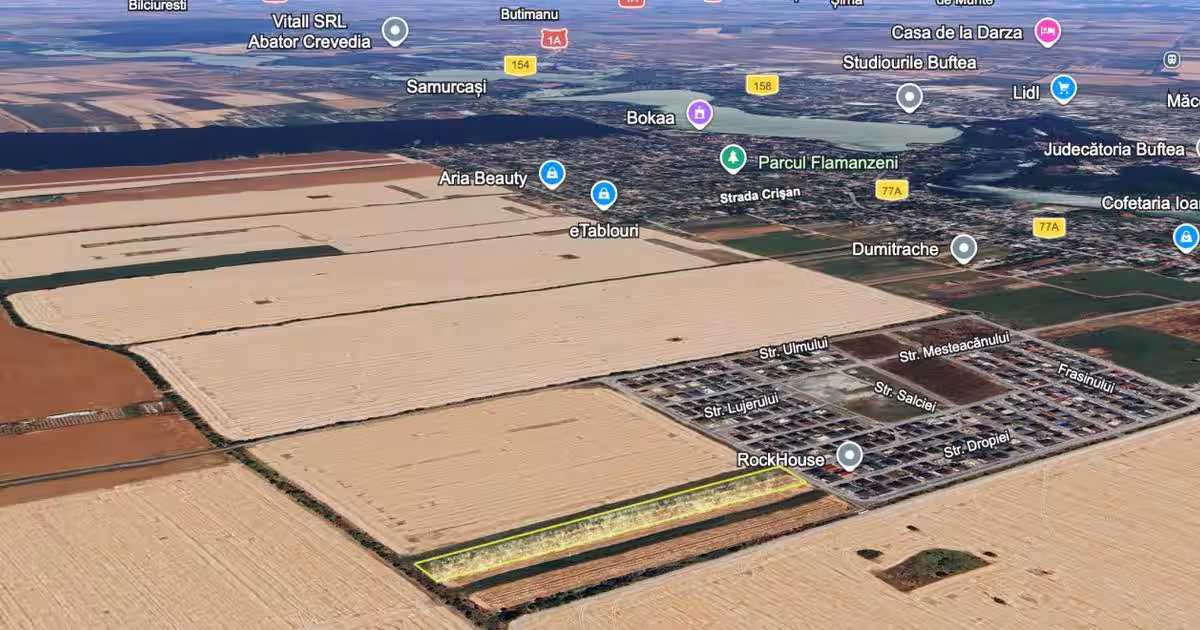 Intravilan | 13124 mp | front 44,5 m | Toate utilitățile | Buftea - Tineretului ---------------------------------------------------------------- Dacă îți cauți următorul proiect care să aibă sens, îți propun un teren intravilan cu suprafața de 13.124 mp, având un front stradal generos de 44,5 m care bifează exact ce contează: poziție, dimensiune, acces și potențial real pentru un ansamblu de vile, situat în Cartierul Tineretului – Buftea. Zona este deja dezvoltată, cu case noi, străzi asfaltate, utilități disponibile și pistă de biciclete, fiind ideală pentru dezvoltarea unui ansamblu de vile. Poziționarea oferă acces rapid către București, ceea ce face proprietatea atractivă pentru familiile care își doresc liniște, dar și conexiune facilă cu orașul. Teren potrivit pentru parcelare și dezvoltare rezidențială unitară! Pentru detalii suplimentare și stabilirea unei vizionări, aștept să mă contactezi.