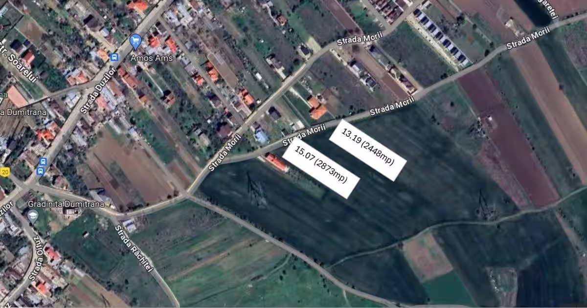 Va prezentam spre vanzare o parcela de teren intravilan in Dumitrana , localitate componenta a orasului Magurele , judet Ilfov . Forma terenului este dreptunghiulara avand o deschidere de 13 m . Terenul se afla in vecinatatea stalpilor de inalta tensiune , pe acest teren constructia unei case este posibila pe suprafata celor 859 mp de la drumul de acces iar diferenta de 1589 mp fiind posibila a fi utilizata ca gradina , sera, livada etc Toata parcela insumand 2448 mp . Pentru mai multe detalii va asteptam la vizionare .
