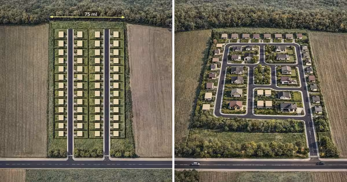 Geometria permite configurarea unor drumuri interne longitudinale, cu distribuție eficientă a loturilor și optimizarea costurilor de infrastructură.
