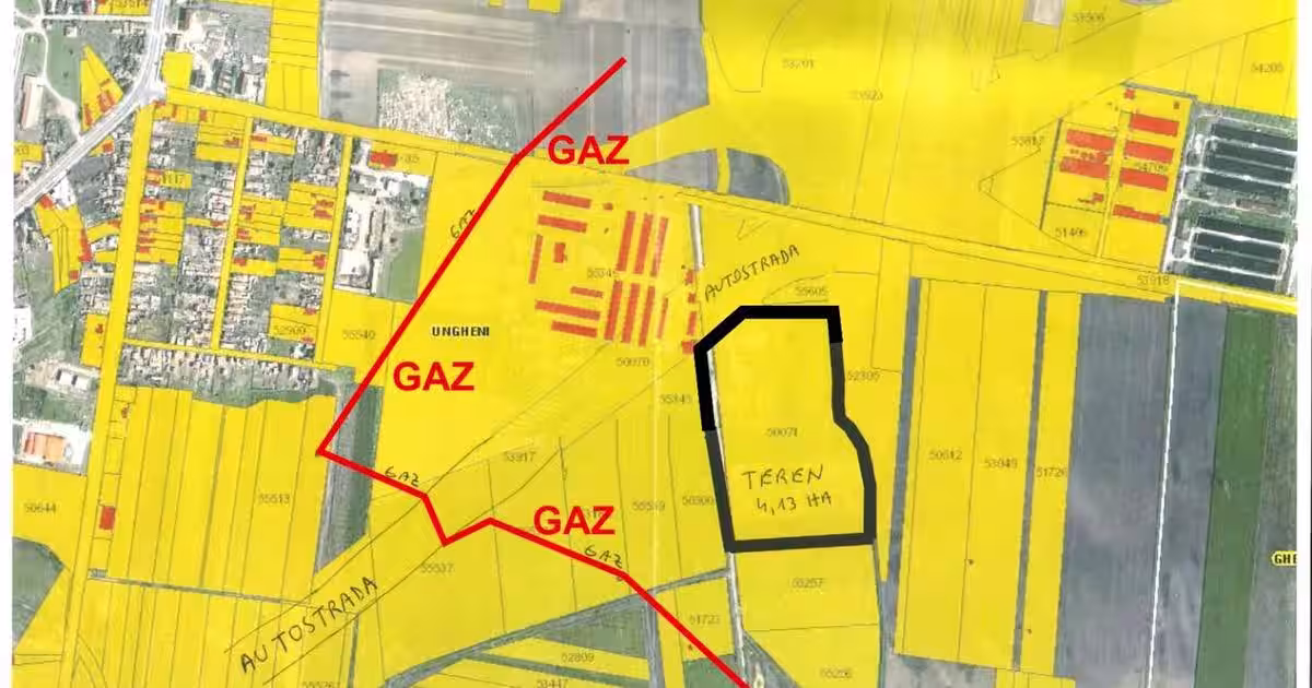 Va oferim spre vânzare 413560 mp ( 4,13 ha ) teren pentru construcții, în Ungheni, Jud Mures. - Situat la 7 km de Târgu Mureș, lângă autostrada Tg. Mureș- Cluj. - Lângă viitorul nod de autostrada Tg. Ms - Iași, la 4 km de Aeropotul Internațional Tg. Mures. -La 2 km de gara CFR Ungheni , având toate utilitățile, Ca si utilitati dispune de: - curent electric trifazic;; - apa curenta si canalizare; conducte care duc pana in fata proprietatii,langa sosea; - gaz Propuneri pentru investite: 1. Fabrica 2. Centru logistic cu depozite. 3. Parc fotovoltaic 4. Parc industrial. Propuneri ca si modalitati de plata: 1. Vanzare/Cumparare 2. Parteneriat/Asociere dezvoltare procentual+ posibilitate de dublare investitie initiala. Ca si avantaj al pozitiei terenului este faptul ca este aproape de accesul la autostrada, toate utilitatile sunt aproape, iar documentatia este pregatita si verificata pentru a facilita inceperea procesului de investitie. Se poate obtine certifica...