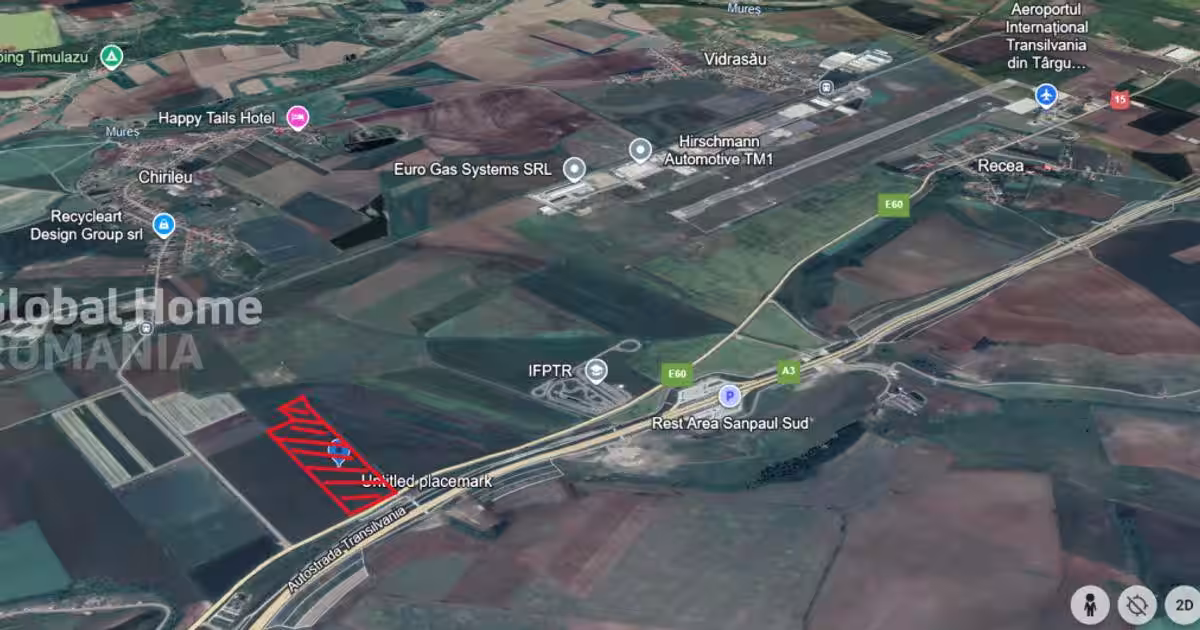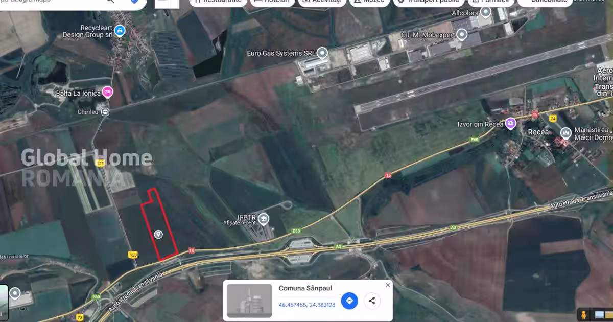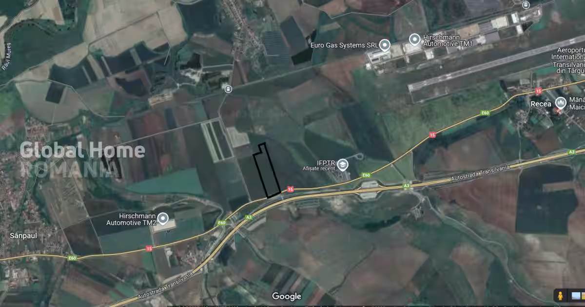 Mihai Dragusin ^ Global Home Romania ^ Real Estate Broker ^ Imobiliare: Reprezentare Exclusiva - 0% Comision Detalii Tehnice: Suprafata – 25.000 MP Deschidere - 98ML Intravilan arabil, P.O.T 65%, C.U.T 1,30, REGIM INALTIME P+2, Unitati industriale, depozitare si Unitati agricole Avand deschidere la Drumul National 15, parallel cu Autostrada Transilvania, Localitatea Chirileu, Comuna Sanpaul, jud. Targu Mures. Datorita asezarii ei la mica distanta de orasul targul Mures, in apropiere de Aeroportul Internațional Transilvania din Târgu Mureș si de Autostrada Transilvania, cat si datorita investitiilor facute in ultimii ani, zona Mures s-a dezvoltat foarte rapid. Conform Certificat de Urbanism Informare, terenul in suprafata totala dde 25.000 Mp, este situate in intravilanul localitatii Chirileu, langa DN15E60, in vecinatatea drumului communal DC123 Chirileu. Teren categorie folosinta arabil. P.O.T 65%, C.U.T 1,30, REGIM INALTIME P+2, Unitati industriale, depozitare si Unitat...
