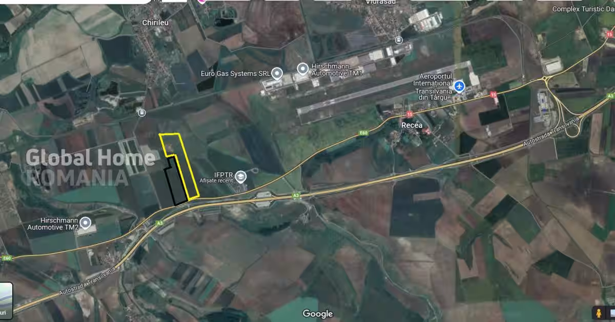 Mihai Dragusin ^ Global Home Romania ^ Real Estate Broker ^ Imobiliare: Reprezentare Exclusiva - 0% Comision Detalii Tehnice: Suprafata –37.500 MP Deschidere - 137 ML Intravilan arabil, P.O.T 65%, C.U.T 1,30, REGIM INALTIME P+2, Unitati industriale, depozitare si Unitati agricole Avand deschidere la Drumul National 15, parallel cu Autostrada Transilvania, Localitatea Chirileu, Comuna Sanpaul, jud. Targu Mures. Datorita asezarii ei la mica distanta de orasul targul Mures, in apropiere de Aeroportul Internațional Transilvania din Târgu Mureș si de Autostrada Transilvania, cat si datorita investitiilor facute in ultimii ani, zona Mures s-a dezvoltat foarte rapid. Conform Certificat de Urbanism Informare, terenul in suprafata totala dde 37.500 Mp, este situate in intravilanul localitatii Chirileu, langa DN15E60, in vecinatatea drumului communal DC123 Chirileu. Teren categorie folosinta arabil. P.O.T 65%, C.U.T 1,30, REGIM INALTIME P+2, Unitati industriale, depozitare si Unita...