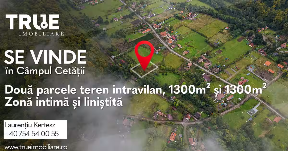 #exclusivitate #trueimobiliare #realestatemures True Imobiliare vă propune în exclusivitate spre vânzare două terenuri intravilane, fiecare cu suprafața de 1.300 m?, situate în zona Capului Cetății - Câmpul Cetății, o zonă liniștită, verde, aproape de pădure, ideală pentru construcții rezidențiale sau case de vacanță. Terenurile se află într-o zonă în continuă dezvoltare, cunoscută pentru aerul curat, relaxare și proximinatea față de natură, dar și pentru atractivitatea turistică, în special datorită Păstrăvăriei Câmpul Cetății, care atrage vizitatori pe tot parcursul anului. Detalii principale: Suprafață: 1.300 m? / parcelă Front stradal: 59 ml Teren intravilan, pretabil pentru construcții Utilități...