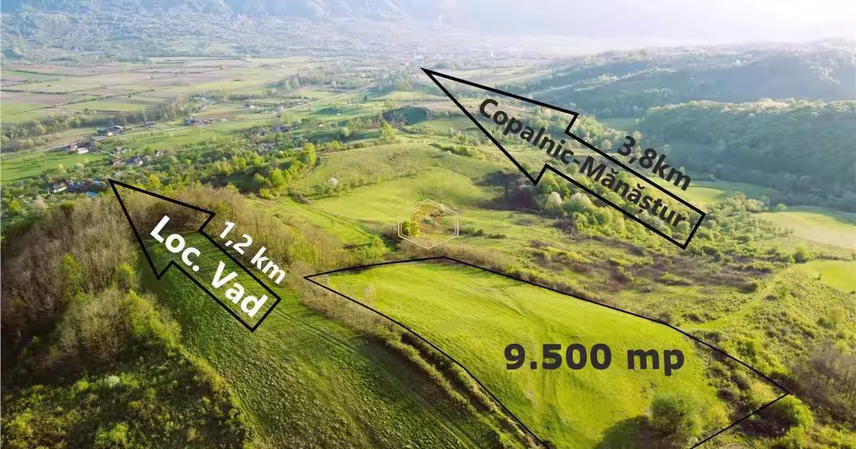 Acest colț de rai se află fix în varful unui deal din localitatea Vad (în drumul spre Cavnic), un sat maramureșean tipic de deal, care și-a păstrat specificul rural, cu gospodării răsfirate și înconjurate de păduri, văi și pășuni. Odată ajuns pe teren, ți se deschide un peisaj spectaculos cu vedere spre dealurile împădurite și localitățile învecinate. Terenul are o suprafață de 9.500 mp cu deschidere de 128 m la drum, are o formă dreptunghiulară și o înclinație ușoară specifică reliefului. Prin fața terenului trece o conductă de apă, captată dintr-un izvor care deservește câteva gospodării. Chiar dacă este situat într-o zonă mai retrasă, ultima casă este la aproximativ 800 de metri iar strada Principală este la o distanță de 1.2 km. O...