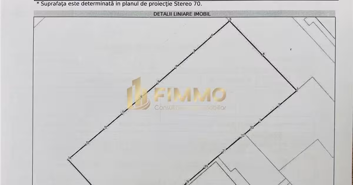 Agentia Imobiliara FIMMO va propune spre vanzare un teren intravilan cu suprafata de 900 mp, situat in zona Burdujeni, in apropierea Clinicii Bethesda, Suceava. Terenul este ideal pentru dezvoltarea unui imobil rezidential tip P+4+M, avand un amplasament strategic intr-o zona urbana in continua expansiune, cu acces rapid catre puncte de interes importante. Caracteristici tehnice: *Suprafata totala: 900 mp * Teren intravilan, cu deschidere generoasa * Forma regulata, configuratie dreptunghiulara * Amplasat la strada, acces facil * Suprafata determinata in planul de proiectie Stereo 70 * Toate utilitatile (apa, gaz, curent, canalizare) sunt disponibile la limita proprietatii Informatii suplimentare: * Proprietate libera de sarcini * Pret de vanzare: 135.000 euro * Potrivit pentru constructii tip bloc, regim P+4+M Documentatia este completa si actualizata conform extrasului de carte funciara. Contactati-ne pentru mai multe detalii si programarea unei vizionari! Telefon: 074...