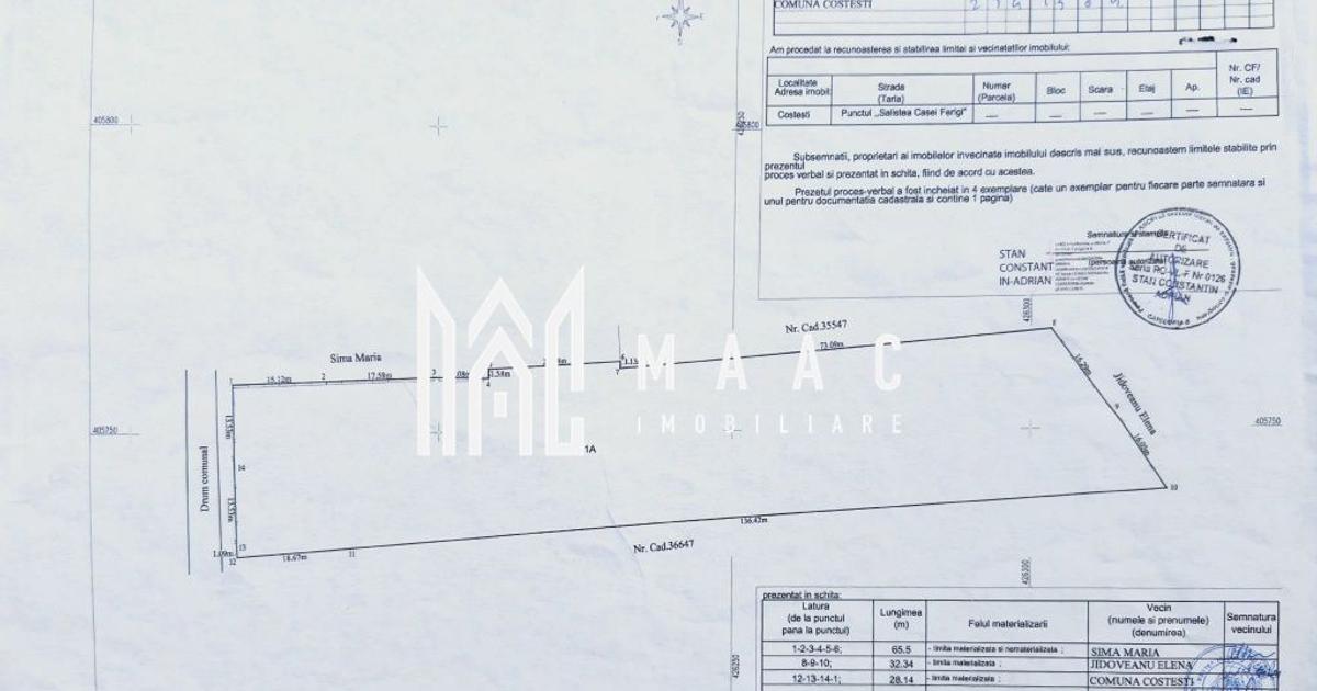 MAAC Imobiliare oferă spre vânzare un teren de 4.000 mp situat în localitatea Costești, județul Vâlcea, într-o zonă pitorească și liniștită, ideală pentru: ✅ construcție locuință individuală ✅ proiect de case de vacanță sau pensiune ✅ investiție imobiliară cu potențial turistic 📌 Detalii teren: Suprafață totală: 4.000 mp Amplasare în zonă verde, cu acces facil Priveliște naturală plăcută Posibilități multiple de construire 📞 Pentru detalii, planuri și vizionări, contactați MAAC Imobiliare. CP2936368